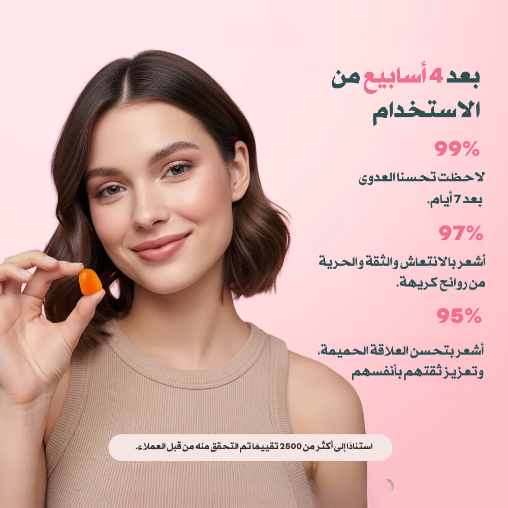 بمكونات طبيعية مضادة للبكتيريا، تحمي المنطقة الحميمة وتمنع التكرار، عشان تشعرين بالأمان العاطفي الكامل.